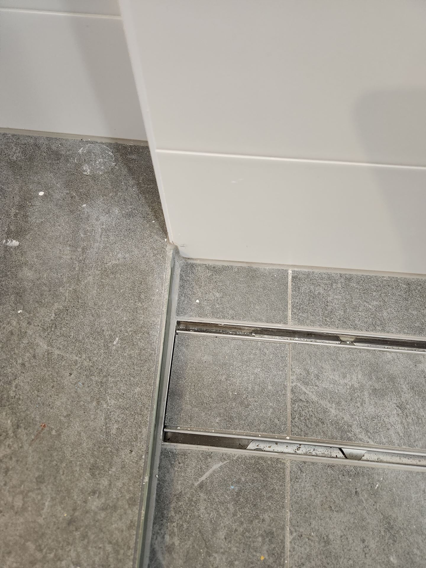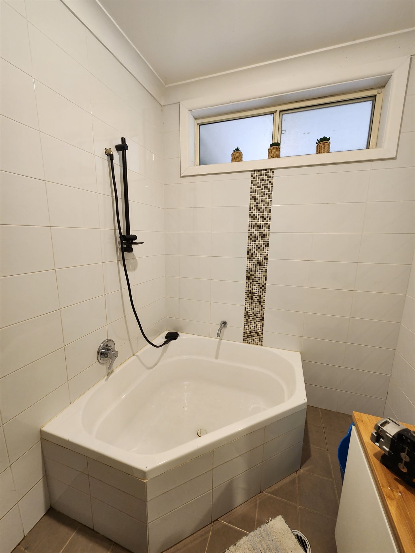 Drag the handle on each photo to wipe between the original bathroom and the finished install.